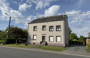 Cette solide maison en pierre de 1950 séduira les amateurs de construction robuste, et de volumes imposants. Erigée sur un terrain de 11 ares 81 centiares, elle profite d'une excellente orientation sud-ouest, ainsi que d'un accès secondaire à l'arrière. La maison se compose d'un séjour, salon, cuisine non aménagée, arrière-cuisine, buanderie, petit garage. A l'étage, sur dalle beton, quatres chambres et une salle de bains à rénover. Le grenier est également sur dalle beton avec une belle charpente et un volume aménageable total de 60 m². Deux caves. Chauffage central fuel (chaudière de marque Franco-Belge encore fonctionnelle), électricité à remettre en conformité, toiture en ardoises naturelles. Classe énergétique G mais mise en place aisée d'une isolation. Très beau terrain plat de 11 ares 81. Petit atelier de 32m² à l'arrière. Très belle orientation sud ouest. Terrain arboré.